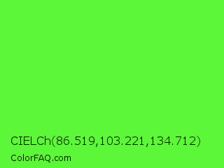 CIELCh 86.519,103.221,134.712 Color is a normal green color and the nearest color is Spring Frost #87ff2a. Hex code #5bf738 and RGB value is rgb(91,247,56). In RGB color space, this color is composed of 36% red, 97% green, 22% blue, In CMYK color space, this color is composed of 63% cyan, 0% magenta, 77% yellow , 3% black , In HSL color space, this color has a hue angle of 109° , 92% saturation and 59% lightness.