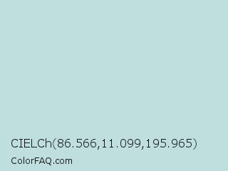 CIELCh 86.566,11.099,195.965 Color is a very light cyan color and the nearest color is Ziggurat #bfdbe2. Hex code #bfdfde and RGB value is rgb(191,223,222). In RGB color space, this color is composed of 75% red, 87% green, 87% blue, In CMYK color space, this color is composed of 14% cyan, 0% magenta, 0% yellow , 13% black , In HSL color space, this color has a hue angle of 178° , 33% saturation and 81% lightness.