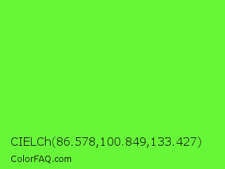 CIELCh 86.578,100.849,133.427 Color is a normal green color and the nearest color is Spring Frost #87ff2a. Hex code #68f639 and RGB value is rgb(104,246,57). In RGB color space, this color is composed of 41% red, 96% green, 22% blue, In CMYK color space, this color is composed of 58% cyan, 0% magenta, 77% yellow , 4% black , In HSL color space, this color has a hue angle of 105° , 91% saturation and 59% lightness.