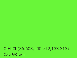 CIELCh 86.608,100.712,133.313 Color is a normal green color and the nearest color is Spring Frost #87ff2a. Hex code #69f639 and RGB value is rgb(105,246,57). In RGB color space, this color is composed of 41% red, 96% green, 22% blue, In CMYK color space, this color is composed of 57% cyan, 0% magenta, 77% yellow , 4% black , In HSL color space, this color has a hue angle of 105° , 91% saturation and 59% lightness.