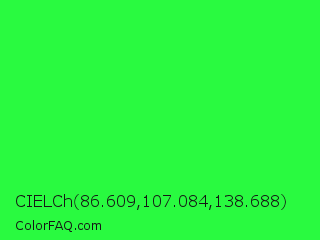 CIELCh 86.609,107.084,138.688 Color is a normal green color and the nearest color is Malachite #0bda51. Hex code #29fa40 and RGB value is rgb(41,250,64). In RGB color space, this color is composed of 16% red, 98% green, 25% blue, In CMYK color space, this color is composed of 84% cyan, 0% magenta, 74% yellow , 2% black , In HSL color space, this color has a hue angle of 127° , 95% saturation and 57% lightness.