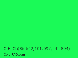 CIELCh 86.642,101.097,141.894 Color is a normal green color and the nearest color is Malachite #0bda51. Hex code #1afa57 and RGB value is rgb(26,250,87). In RGB color space, this color is composed of 10% red, 98% green, 34% blue, In CMYK color space, this color is composed of 90% cyan, 0% magenta, 65% yellow , 2% black , In HSL color space, this color has a hue angle of 136° , 96% saturation and 54% lightness.