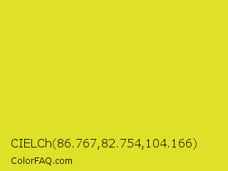 CIELCh 86.767,82.754,104.166 Color is a normal yellow color and the nearest color is Sunflower #e4d422. Hex code #dee128 and RGB value is rgb(222,225,40). In RGB color space, this color is composed of 87% red, 88% green, 16% blue, In CMYK color space, this color is composed of 1% cyan, 0% magenta, 82% yellow , 12% black , In HSL color space, this color has a hue angle of 61° , 76% saturation and 52% lightness.