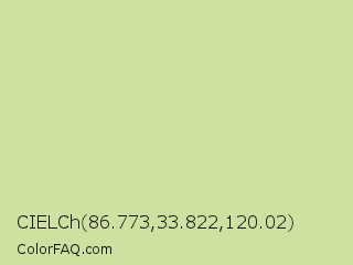 CIELCh 86.773,33.822,120.02 Color is a light lime color and the nearest color is Deco #d2da97. Hex code #cee1a1 and RGB value is rgb(206,225,161). In RGB color space, this color is composed of 81% red, 88% green, 63% blue, In CMYK color space, this color is composed of 8% cyan, 0% magenta, 28% yellow , 12% black , In HSL color space, this color has a hue angle of 78° , 52% saturation and 76% lightness.