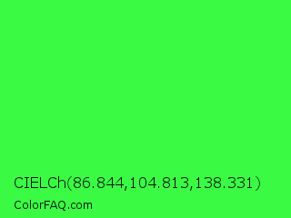 CIELCh 86.844,104.813,138.331 Color is a normal green color and the nearest color is Neon Green #39ff14. Hex code #3afa44 and RGB value is rgb(58,250,68). In RGB color space, this color is composed of 23% red, 98% green, 27% blue, In CMYK color space, this color is composed of 77% cyan, 0% magenta, 73% yellow , 2% black , In HSL color space, this color has a hue angle of 123° , 95% saturation and 60% lightness.