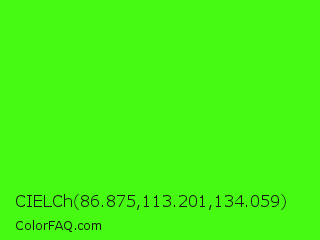 CIELCh 86.875,113.201,134.059 Color is a normal green color and the nearest color is Neon Green #39ff14. Hex code #47fa11 and RGB value is rgb(71,250,17). In RGB color space, this color is composed of 28% red, 98% green, 7% blue, In CMYK color space, this color is composed of 72% cyan, 0% magenta, 93% yellow , 2% black , In HSL color space, this color has a hue angle of 106° , 96% saturation and 52% lightness.