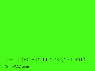 CIELCh 86.891,112.232,134.391 Color is a normal green color and the nearest color is Neon Green #39ff14. Hex code #47fa1a and RGB value is rgb(71,250,26). In RGB color space, this color is composed of 28% red, 98% green, 10% blue, In CMYK color space, this color is composed of 72% cyan, 0% magenta, 90% yellow , 2% black , In HSL color space, this color has a hue angle of 108° , 96% saturation and 54% lightness.