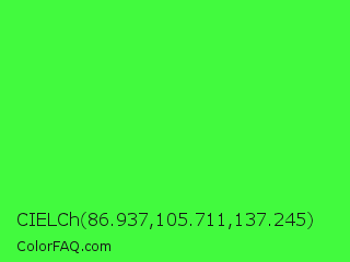 CIELCh 86.937,105.711,137.245 Color is a light green color and the nearest color is Neon Green #39ff14. Hex code #42fa3e and RGB value is rgb(66,250,62). In RGB color space, this color is composed of 26% red, 98% green, 24% blue, In CMYK color space, this color is composed of 74% cyan, 0% magenta, 75% yellow , 2% black , In HSL color space, this color has a hue angle of 119° , 95% saturation and 61% lightness.