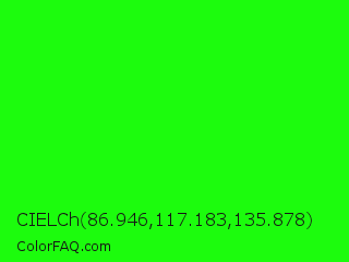 CIELCh 86.946,117.183,135.878 Color is a normal green color and the nearest color is Neon Green #39ff14. Hex code #1cfc0d and RGB value is rgb(28,252,13). In RGB color space, this color is composed of 11% red, 99% green, 5% blue, In CMYK color space, this color is composed of 89% cyan, 0% magenta, 95% yellow , 1% black , In HSL color space, this color has a hue angle of 116° , 98% saturation and 52% lightness.