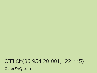 CIELCh 86.954,28.881,122.445 Color is a light green color and the nearest color is Green Mist #cbd3b0. Hex code #cee1ab and RGB value is rgb(206,225,171). In RGB color space, this color is composed of 81% red, 88% green, 67% blue, In CMYK color space, this color is composed of 8% cyan, 0% magenta, 24% yellow , 12% black , In HSL color space, this color has a hue angle of 81° , 47% saturation and 78% lightness.