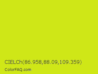 CIELCh 86.958,88.09,109.359 Color is a normal yellow color and the nearest color is Las Palmas #c6e610. Hex code #cfe617 and RGB value is rgb(207,230,23). In RGB color space, this color is composed of 81% red, 90% green, 9% blue, In CMYK color space, this color is composed of 10% cyan, 0% magenta, 90% yellow , 10% black , In HSL color space, this color has a hue angle of 67° , 82% saturation and 50% lightness.