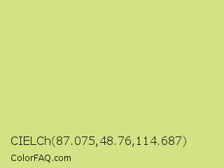CIELCh 87.075,48.76,114.687 Color is a light lime color and the nearest color is Medium Spring Bud #c9dc87. Hex code #d1e384 and RGB value is rgb(209,227,132). In RGB color space, this color is composed of 82% red, 89% green, 52% blue, In CMYK color space, this color is composed of 8% cyan, 0% magenta, 42% yellow , 11% black , In HSL color space, this color has a hue angle of 71° , 63% saturation and 70% lightness.