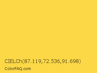 CIELCh 87.119,72.536,91.698 Color is a light yellow color and the nearest color is Gargoyle Gas #ffdf46. Hex code #fcd846 and RGB value is rgb(252,216,70). In RGB color space, this color is composed of 99% red, 85% green, 27% blue, In CMYK color space, this color is composed of 0% cyan, 14% magenta, 72% yellow , 1% black , In HSL color space, this color has a hue angle of 48° , 97% saturation and 63% lightness.