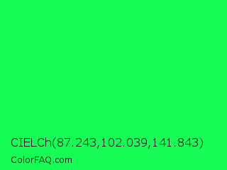 CIELCh 87.243,102.039,141.843 Color is a normal green color and the nearest color is Malachite #0bda51. Hex code #18fc57 and RGB value is rgb(24,252,87). In RGB color space, this color is composed of 9% red, 99% green, 34% blue, In CMYK color space, this color is composed of 90% cyan, 0% magenta, 65% yellow , 1% black , In HSL color space, this color has a hue angle of 137° , 97% saturation and 54% lightness.