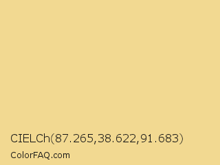 CIELCh 87.265,38.622,91.683 Color is a light orange color and the nearest color is Chalky #eed794. Hex code #f2d991 and RGB value is rgb(242,217,145). In RGB color space, this color is composed of 95% red, 85% green, 57% blue, In CMYK color space, this color is composed of 0% cyan, 10% magenta, 40% yellow , 5% black , In HSL color space, this color has a hue angle of 45° , 79% saturation and 76% lightness.