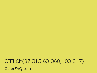 CIELCh 87.315,63.368,103.317 Color is a light yellow color and the nearest color is Confetti #e9d75a. Hex code #e4e060 and RGB value is rgb(228,224,96). In RGB color space, this color is composed of 89% red, 88% green, 38% blue, In CMYK color space, this color is composed of 0% cyan, 2% magenta, 58% yellow , 11% black , In HSL color space, this color has a hue angle of 58° , 71% saturation and 64% lightness.
