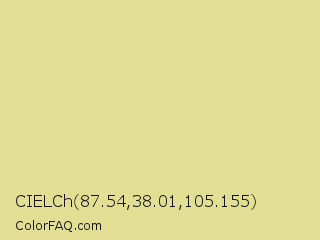 CIELCh 87.54,38.01,105.155 Color is a light yellow color and the nearest color is Zombie #e4d69b. Hex code #e2df95 and RGB value is rgb(226,223,149). In RGB color space, this color is composed of 89% red, 87% green, 58% blue, In CMYK color space, this color is composed of 0% cyan, 1% magenta, 34% yellow , 11% black , In HSL color space, this color has a hue angle of 58° , 57% saturation and 74% lightness.