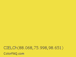 CIELCh 88.068,75.998,98.651 Color is a normal yellow color and the nearest color is Sandstorm #ecd540. Hex code #f0e040 and RGB value is rgb(240,224,64). In RGB color space, this color is composed of 94% red, 88% green, 25% blue, In CMYK color space, this color is composed of 0% cyan, 7% magenta, 73% yellow , 6% black , In HSL color space, this color has a hue angle of 55° , 85% saturation and 60% lightness.