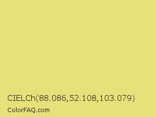 CIELCh 88.086,52.108,103.079 Color is a light yellow color and the nearest color is Golden Sand #f0db7d. Hex code #e7e17a and RGB value is rgb(231,225,122). In RGB color space, this color is composed of 91% red, 88% green, 48% blue, In CMYK color space, this color is composed of 0% cyan, 3% magenta, 47% yellow , 9% black , In HSL color space, this color has a hue angle of 57° , 69% saturation and 69% lightness.