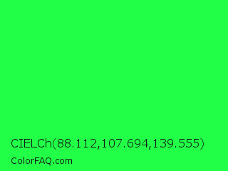 CIELCh 88.112,107.694,139.555 Color is a normal green color and the nearest color is Malachite #0bda51. Hex code #21ff47 and RGB value is rgb(33,255,71). In RGB color space, this color is composed of 13% red, 100% green, 28% blue, In CMYK color space, this color is composed of 87% cyan, 0% magenta, 72% yellow , 0% black , In HSL color space, this color has a hue angle of 130° , 100% saturation and 56% lightness.