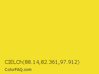 CIELCh 88.14,82.361,97.912 Color is a normal yellow color and the nearest color is Dandelion #f0e130. Hex code #f2e02a and RGB value is rgb(242,224,42). In RGB color space, this color is composed of 95% red, 88% green, 16% blue, In CMYK color space, this color is composed of 0% cyan, 7% magenta, 83% yellow , 5% black , In HSL color space, this color has a hue angle of 55° , 88% saturation and 56% lightness.
