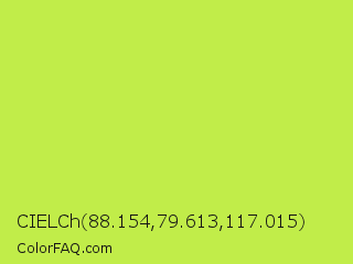 CIELCh 88.154,79.613,117.015 Color is a light lime color and the nearest color is June Bud #bdda57. Hex code #c1ed49 and RGB value is rgb(193,237,73). In RGB color space, this color is composed of 76% red, 93% green, 29% blue, In CMYK color space, this color is composed of 19% cyan, 0% magenta, 69% yellow , 7% black , In HSL color space, this color has a hue angle of 76° , 82% saturation and 61% lightness.