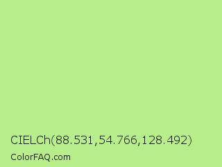 CIELCh 88.531,54.766,128.492 Color is a light green color and the nearest color is Sulu #c1f07c. Hex code #b8ee8a and RGB value is rgb(184,238,138). In RGB color space, this color is composed of 72% red, 93% green, 54% blue, In CMYK color space, this color is composed of 23% cyan, 0% magenta, 42% yellow , 7% black , In HSL color space, this color has a hue angle of 92° , 75% saturation and 74% lightness.