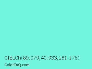 CIELCh 89.079,40.933,181.176 Color is a light cyan color and the nearest color is Aquamarine #7fffd4. Hex code #73f5e0 and RGB value is rgb(115,245,224). In RGB color space, this color is composed of 45% red, 96% green, 88% blue, In CMYK color space, this color is composed of 53% cyan, 0% magenta, 9% yellow , 4% black , In HSL color space, this color has a hue angle of 170° , 87% saturation and 71% lightness.