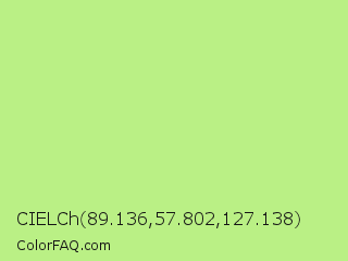 CIELCh 89.136,57.802,127.138 Color is a light green color and the nearest color is Sulu #c1f07c. Hex code #baf085 and RGB value is rgb(186,240,133). In RGB color space, this color is composed of 73% red, 94% green, 52% blue, In CMYK color space, this color is composed of 23% cyan, 0% magenta, 45% yellow , 6% black , In HSL color space, this color has a hue angle of 90° , 78% saturation and 73% lightness.