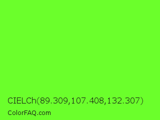 CIELCh 89.309,107.408,132.307 Color is a normal green color and the nearest color is Spring Frost #87ff2a. Hex code #6bff2b and RGB value is rgb(107,255,43). In RGB color space, this color is composed of 42% red, 100% green, 17% blue, In CMYK color space, this color is composed of 58% cyan, 0% magenta, 83% yellow , 0% black , In HSL color space, this color has a hue angle of 102° , 100% saturation and 58% lightness.