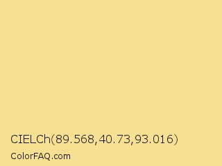 CIELCh 89.568,40.73,93.016 Color is a light yellow color and the nearest color is Golden Glow #fde295. Hex code #f8e093 and RGB value is rgb(248,224,147). In RGB color space, this color is composed of 97% red, 88% green, 58% blue, In CMYK color space, this color is composed of 0% cyan, 10% magenta, 41% yellow , 3% black , In HSL color space, this color has a hue angle of 46° , 88% saturation and 77% lightness.