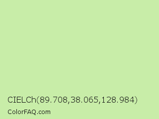 CIELCh 89.708,38.065,128.984 Color is a light green color and the nearest color is Gossip #d2f8b0. Hex code #c8eda8 and RGB value is rgb(200,237,168). In RGB color space, this color is composed of 78% red, 93% green, 66% blue, In CMYK color space, this color is composed of 16% cyan, 0% magenta, 29% yellow , 7% black , In HSL color space, this color has a hue angle of 92° , 66% saturation and 79% lightness.