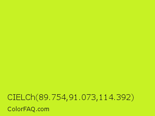 CIELCh 89.754,91.073,114.392 Color is a normal lime color and the nearest color is Arctic Lime #d0ff14. Hex code #c7f224 and RGB value is rgb(199,242,36). In RGB color space, this color is composed of 78% red, 95% green, 14% blue, In CMYK color space, this color is composed of 18% cyan, 0% magenta, 85% yellow , 5% black , In HSL color space, this color has a hue angle of 73° , 89% saturation and 55% lightness.