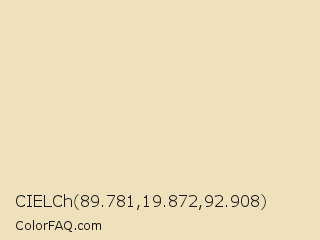 CIELCh 89.781,19.872,92.908 Color is a very light orange color and the nearest color is Dutch White #efdfbb. Hex code #efe1bc and RGB value is rgb(239,225,188). In RGB color space, this color is composed of 94% red, 88% green, 74% blue, In CMYK color space, this color is composed of 0% cyan, 6% magenta, 21% yellow , 6% black , In HSL color space, this color has a hue angle of 44° , 61% saturation and 84% lightness.
