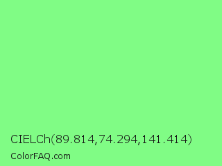 CIELCh 89.814,74.294,141.414 Color is a light green color and the nearest color is Light Green #90ee90. Hex code #80fc85 and RGB value is rgb(128,252,133). In RGB color space, this color is composed of 50% red, 99% green, 52% blue, In CMYK color space, this color is composed of 49% cyan, 0% magenta, 47% yellow , 1% black , In HSL color space, this color has a hue angle of 122° , 95% saturation and 75% lightness.