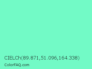 CIELCh 89.871,51.096,164.338 Color is a light green color and the nearest color is Aquamarine #7fffd4. Hex code #72fac6 and RGB value is rgb(114,250,198). In RGB color space, this color is composed of 45% red, 98% green, 78% blue, In CMYK color space, this color is composed of 54% cyan, 0% magenta, 21% yellow , 2% black , In HSL color space, this color has a hue angle of 157° , 93% saturation and 71% lightness.