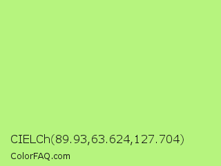 CIELCh 89.93,63.624,127.704 Color is a light green color and the nearest color is Sulu #c1f07c. Hex code #b6f47e and RGB value is rgb(182,244,126). In RGB color space, this color is composed of 71% red, 96% green, 49% blue, In CMYK color space, this color is composed of 25% cyan, 0% magenta, 48% yellow , 4% black , In HSL color space, this color has a hue angle of 92° , 84% saturation and 73% lightness.