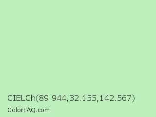 CIELCh 89.944,32.155,142.567 Color is a very light green color and the nearest color is Madang #b7f0be. Hex code #bdefbc and RGB value is rgb(189,239,188). In RGB color space, this color is composed of 74% red, 94% green, 74% blue, In CMYK color space, this color is composed of 21% cyan, 0% magenta, 21% yellow , 6% black , In HSL color space, this color has a hue angle of 119° , 61% saturation and 84% lightness.