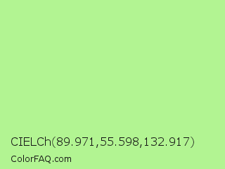CIELCh 89.971,55.598,132.917 Color is a light green color and the nearest color is Granny Smith Apple #a8e4a0. Hex code #b2f492 and RGB value is rgb(178,244,146). In RGB color space, this color is composed of 70% red, 96% green, 57% blue, In CMYK color space, this color is composed of 27% cyan, 0% magenta, 40% yellow , 4% black , In HSL color space, this color has a hue angle of 100° , 82% saturation and 76% lightness.