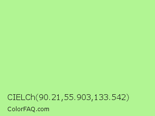 CIELCh 90.21,55.903,133.542 Color is a light green color and the nearest color is Granny Smith Apple #a8e4a0. Hex code #b1f593 and RGB value is rgb(177,245,147). In RGB color space, this color is composed of 69% red, 96% green, 58% blue, In CMYK color space, this color is composed of 28% cyan, 0% magenta, 40% yellow , 4% black , In HSL color space, this color has a hue angle of 102° , 83% saturation and 77% lightness.
