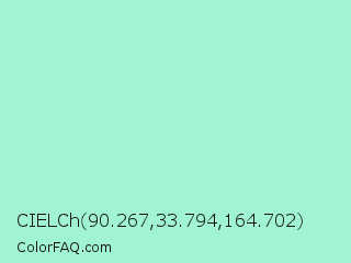 CIELCh 90.267,33.794,164.702 Color is a light green color and the nearest color is Magic Mint #aaf0d1. Hex code #a1f4d1 and RGB value is rgb(161,244,209). In RGB color space, this color is composed of 63% red, 96% green, 82% blue, In CMYK color space, this color is composed of 34% cyan, 0% magenta, 14% yellow , 4% black , In HSL color space, this color has a hue angle of 155° , 79% saturation and 79% lightness.