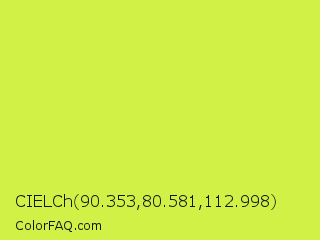 CIELCh 90.353,80.581,112.998 Color is a light lime color and the nearest color is Maximum Green Yellow #d9e650. Hex code #d2f147 and RGB value is rgb(210,241,71). In RGB color space, this color is composed of 82% red, 95% green, 28% blue, In CMYK color space, this color is composed of 13% cyan, 0% magenta, 71% yellow , 5% black , In HSL color space, this color has a hue angle of 71° , 86% saturation and 61% lightness.