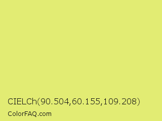 CIELCh 90.504,60.155,109.208 Color is a light yellow color and the nearest color is Manz #eeef78. Hex code #e2ec73 and RGB value is rgb(226,236,115). In RGB color space, this color is composed of 89% red, 93% green, 45% blue, In CMYK color space, this color is composed of 4% cyan, 0% magenta, 51% yellow , 7% black , In HSL color space, this color has a hue angle of 65° , 76% saturation and 69% lightness.