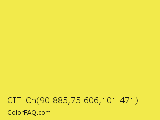 CIELCh 90.885,75.606,101.471 Color is a light yellow color and the nearest color is Minion Yellow #f5e050. Hex code #f2ea4b and RGB value is rgb(242,234,75). In RGB color space, this color is composed of 95% red, 92% green, 29% blue, In CMYK color space, this color is composed of 0% cyan, 3% magenta, 69% yellow , 5% black , In HSL color space, this color has a hue angle of 57° , 87% saturation and 62% lightness.