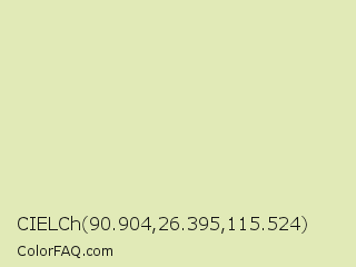 CIELCh 90.904,26.395,115.524 Color is a very light lime color and the nearest color is Caper #dcedb4. Hex code #e1eab7 and RGB value is rgb(225,234,183). In RGB color space, this color is composed of 88% red, 92% green, 72% blue, In CMYK color space, this color is composed of 4% cyan, 0% magenta, 22% yellow , 8% black , In HSL color space, this color has a hue angle of 71° , 55% saturation and 82% lightness.