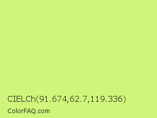 CIELCh 91.674,62.7,119.336 Color is a light lime color and the nearest color is Sulu #c1f07c. Hex code #cff57a and RGB value is rgb(207,245,122). In RGB color space, this color is composed of 81% red, 96% green, 48% blue, In CMYK color space, this color is composed of 16% cyan, 0% magenta, 50% yellow , 4% black , In HSL color space, this color has a hue angle of 79° , 86% saturation and 72% lightness.