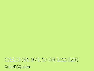 CIELCh 91.971,57.68,122.023 Color is a light green color and the nearest color is Sulu #c1f07c. Hex code #cdf687 and RGB value is rgb(205,246,135). In RGB color space, this color is composed of 80% red, 96% green, 53% blue, In CMYK color space, this color is composed of 17% cyan, 0% magenta, 45% yellow , 4% black , In HSL color space, this color has a hue angle of 82° , 86% saturation and 75% lightness.