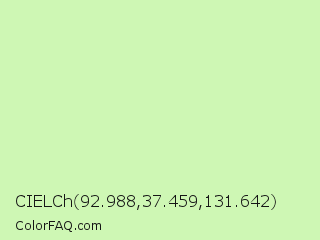 CIELCh 92.988,37.459,131.642 Color is a very light green color and the nearest color is Gossip #d2f8b0. Hex code #cef7b4 and RGB value is rgb(206,247,180). In RGB color space, this color is composed of 81% red, 97% green, 71% blue, In CMYK color space, this color is composed of 17% cyan, 0% magenta, 27% yellow , 3% black , In HSL color space, this color has a hue angle of 97° , 81% saturation and 84% lightness.