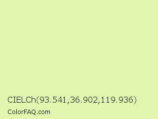 CIELCh 93.541,36.902,119.936 Color is a very light lime color and the nearest color is Caper #dcedb4. Hex code #e0f5ae and RGB value is rgb(224,245,174). In RGB color space, this color is composed of 88% red, 96% green, 68% blue, In CMYK color space, this color is composed of 9% cyan, 0% magenta, 29% yellow , 4% black , In HSL color space, this color has a hue angle of 78° , 78% saturation and 82% lightness.