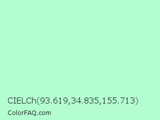 CIELCh 93.619,34.835,155.713 Color is a very light green color and the nearest color is Magic Mint #aaf0d1. Hex code #b3fdd0 and RGB value is rgb(179,253,208). In RGB color space, this color is composed of 70% red, 99% green, 82% blue, In CMYK color space, this color is composed of 29% cyan, 0% magenta, 18% yellow , 1% black , In HSL color space, this color has a hue angle of 144° , 95% saturation and 85% lightness.